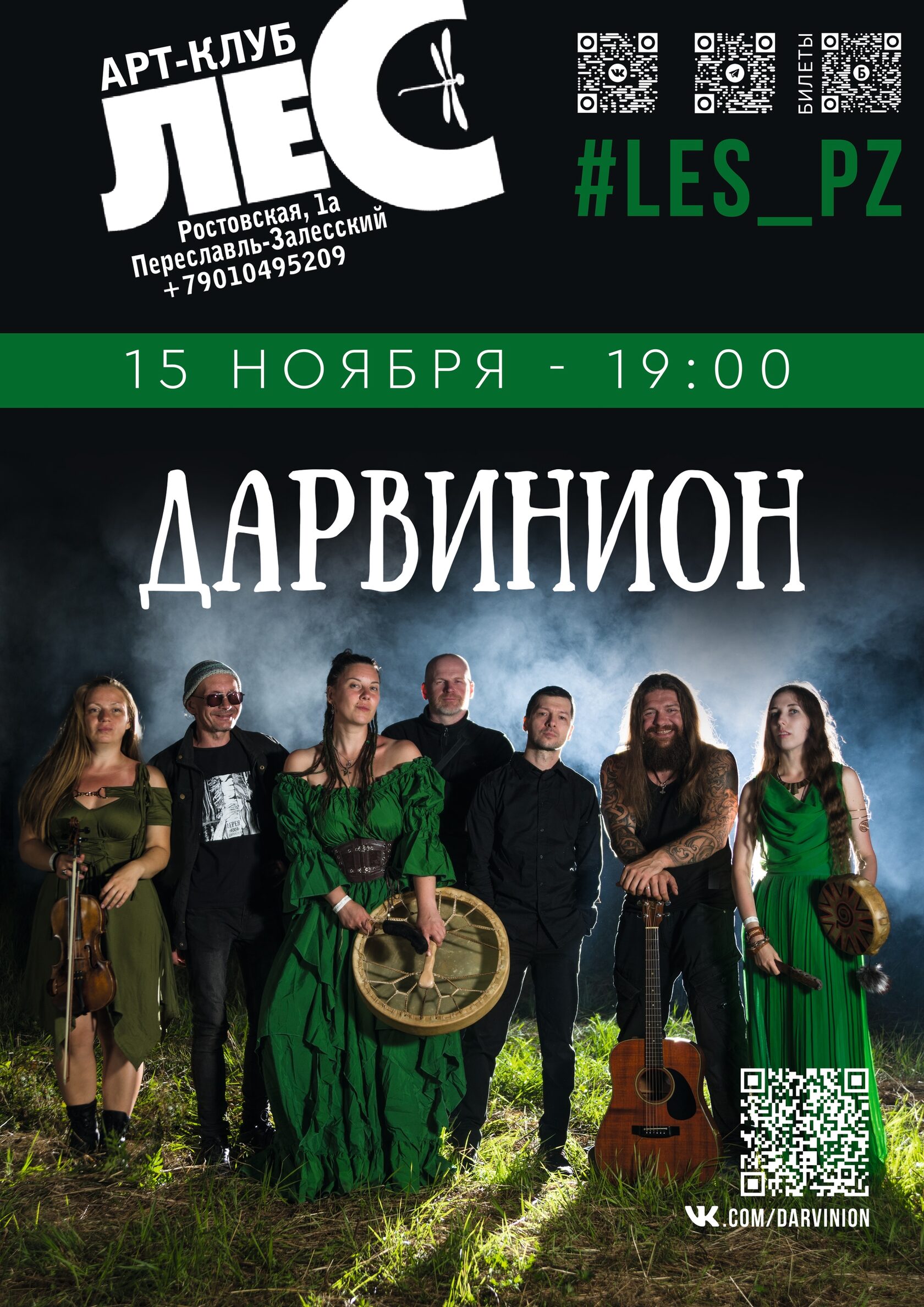 Группа Дарвинион превратит сцену в портал, который откроет двери в волшебный мир сказок и мифов! Хотите впасть в шаманский транс? Отыскать одолень траву? Услышать пение сладкоголосых ундин? Тогда приходите! Уже 30 лет группа Дарвинион радует зрителей и всегда ставит своей целью играть красивые авторские композиции и создавать атмосферу праздника!